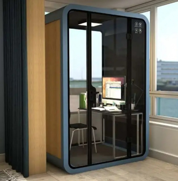 The booths are upholstered with sound-absorbing fabric which covers the walls and floors offering protection of up to 45 decibels. Also, the sidewall panels and doors are made from high-quality insulating glass, helping to further soundproof the booths.